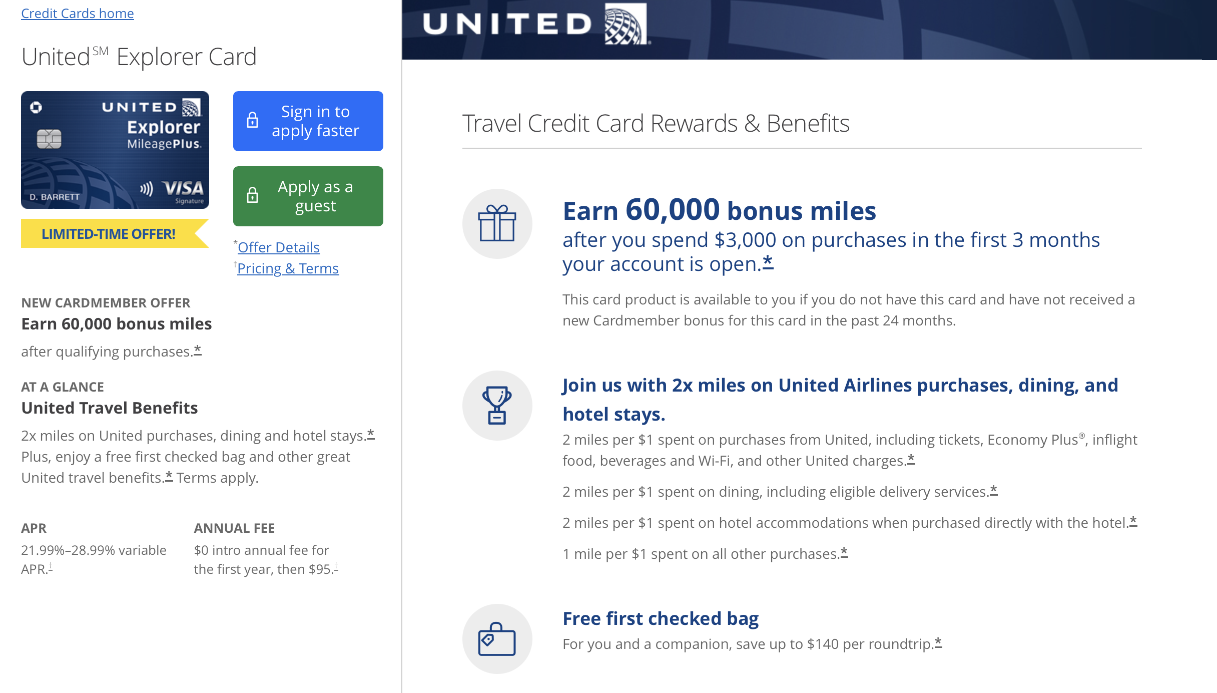 유나이티드 항공을 자주 이용하기도 하고, 다음 여행지를 구매할 계획을 가지고 있기 때문에, 신용카드를 만들기로 결정했습니다.