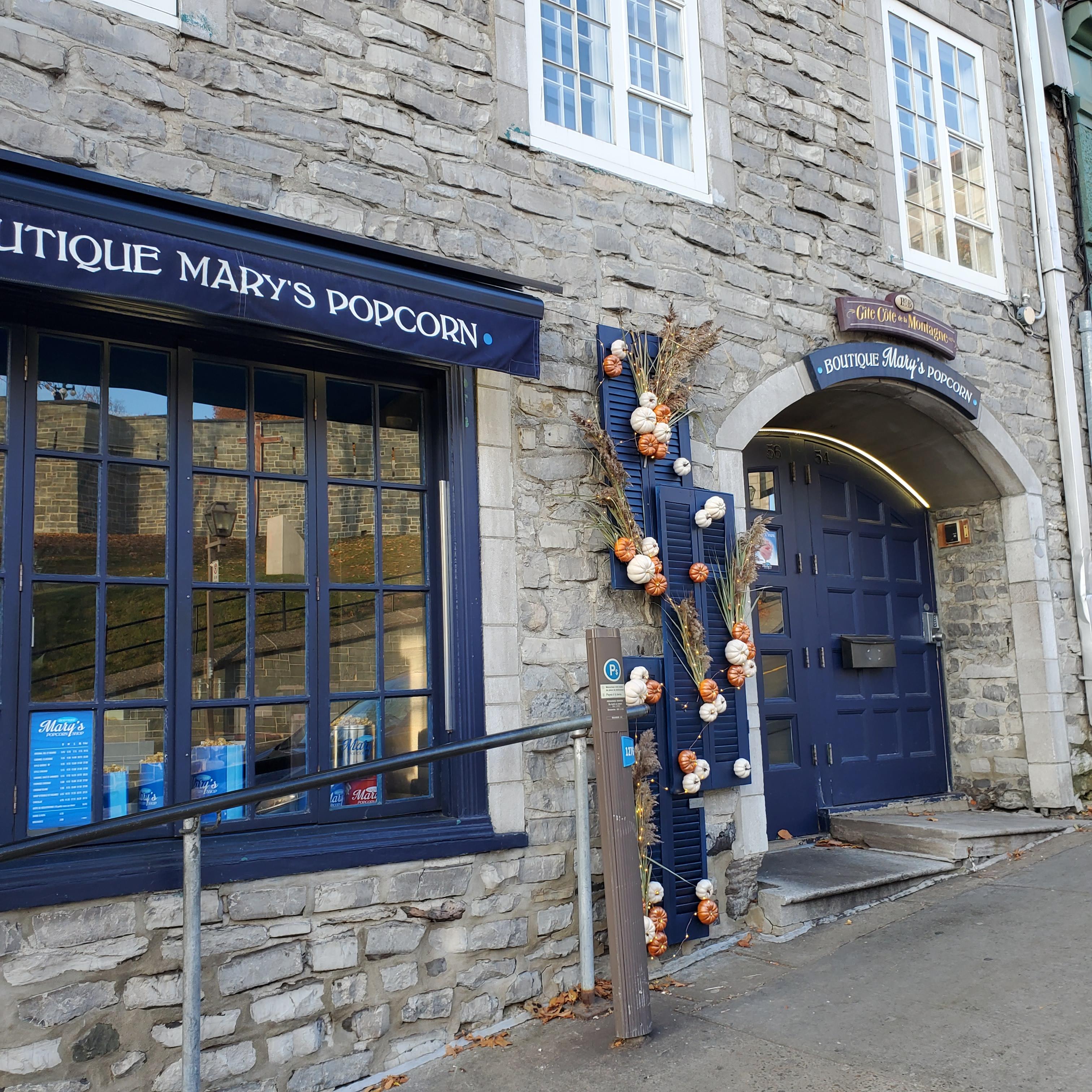 * Mary's popcorn shop: 목부러지는 계단을 오르락 내리락 하다보면 지나칠수없는 곳이 팝콘 상점이다. 냄새부터가 지날 칠수 없다. 배가 고픈 때에 지나가게 되면 코가 저절로 발을 멈출 것이다. 오랫동안 먹으려면 Tin 틴 캔을 사야되고, 우리는 위공간이 작고 가방의 공간은 없지만 맛은 봐야되기 때문에 제일 작은 스몰 사이즈로 샀다. 우리가 선택한 맛은 퀘벡 스타일이다. 차이점을 물어보니 퀘벡 스타일은 메이플맛 + 체다맛이 섞여 있는 맛이라고 했다. 메이플 맛은 카라멜 맛과 비슷했다. 체다맛이 섞이니 너무 질리지도 않았다.